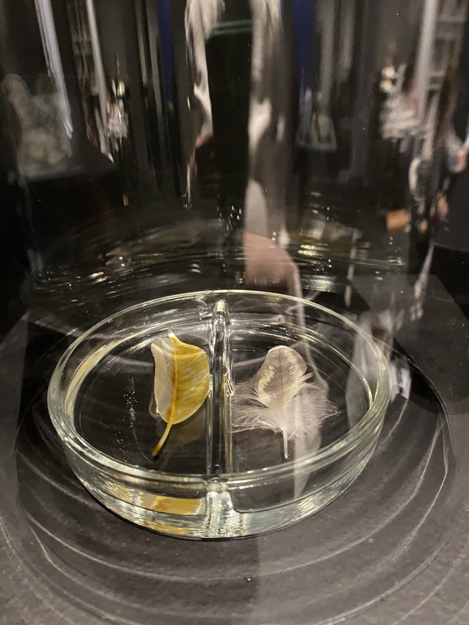 To create the artificial feather we used a decellularized plant leaf. Although any plant can be used, we chose a fern leaf and a ficus leaf, since they bear the most resemblance to a feather.